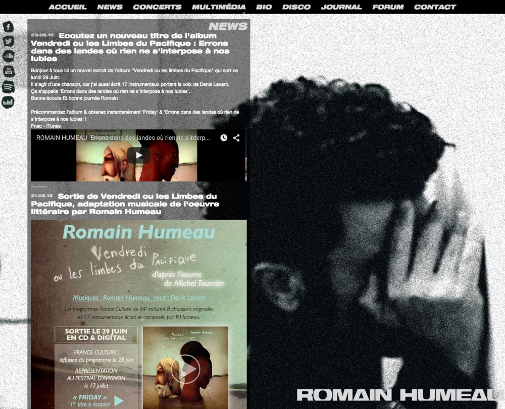 Romain Humeau http://www.romain-humeau.com Site du musicien Romain Humeau Webdesign et développement