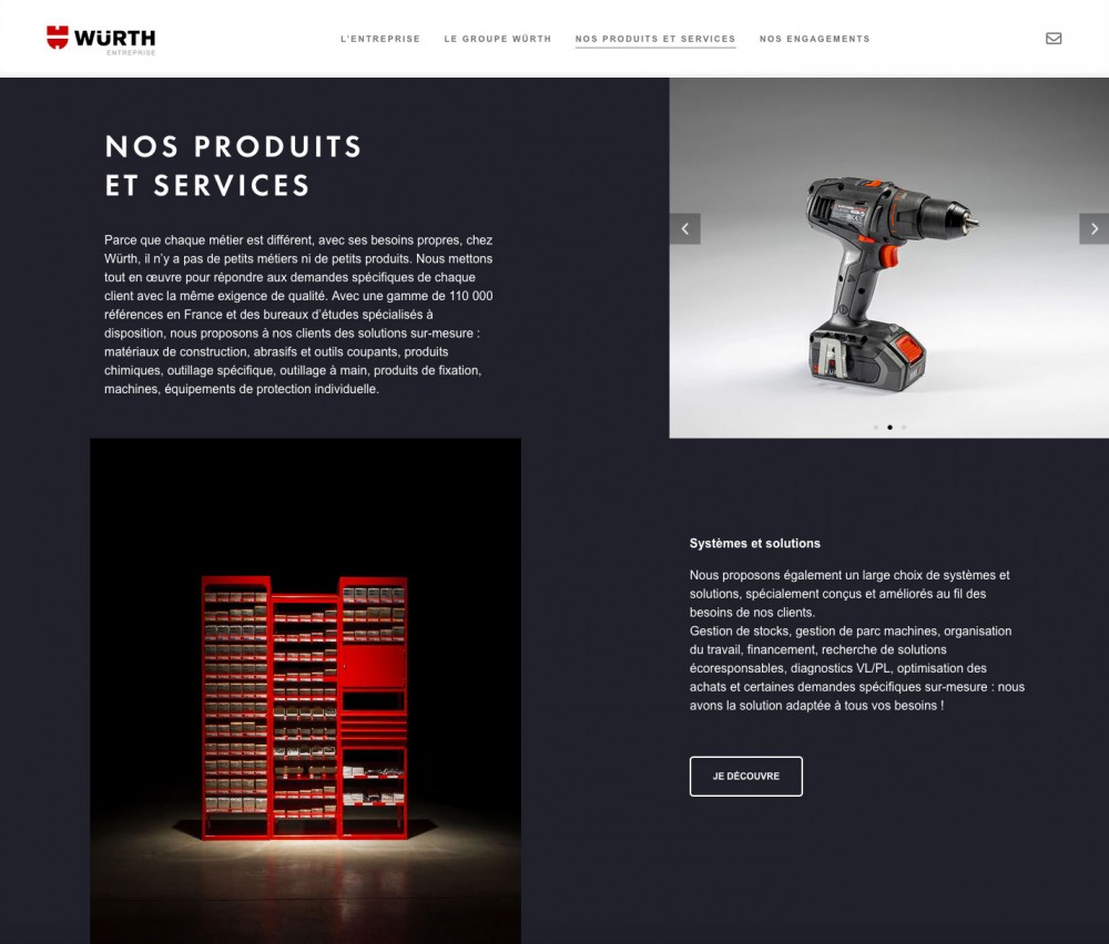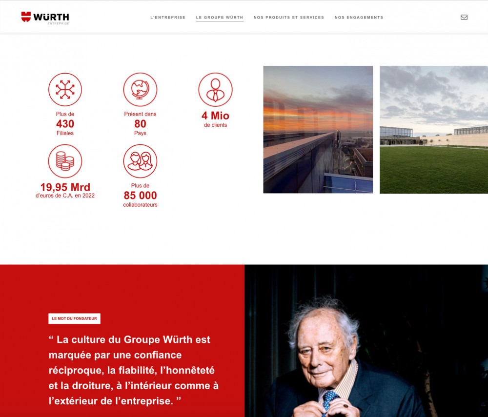 Würth France - site Entreprise https://entreprise.wurth.fr/ Développement Wordpress du site Entreprise de la société Würth France